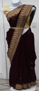 Beautiful Dark Wine & Golden Saree available in two more different colours. For inquiry , Please Contact.